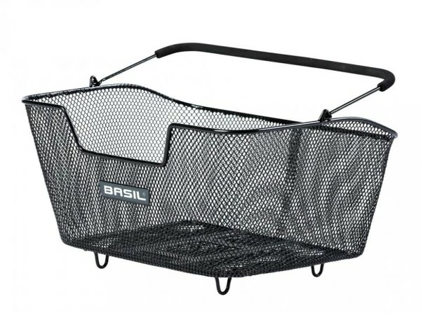 Der Basil Base M Multi-System ist ein Fahrradkorb, der an der Hinterradachse befestigt wird und mit einem Gepäckträger kompatibel ist.