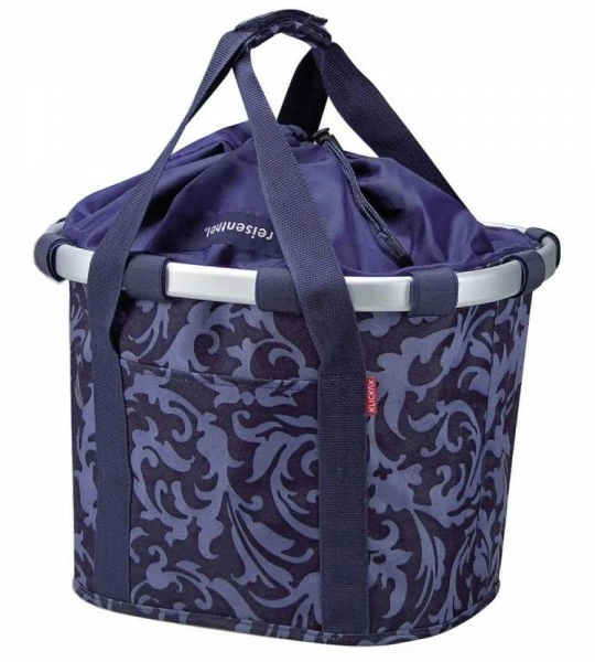 Ergebnis der Kooperation zweier starker Marken. Der schicke Textilkorb von Reisenthel mit dem markanten leichten Aluminiumrahmen – ausgerüstet mit Kupplung für den KLICKfix Lenkeradapter von RIXEN & KAUL. Zum Shoppen oder Ausflug findet hier jeder ein passendes Dekor zum Rad. Mit dem Kordelzug wird der Korb ruckzuck geschlossen. Handy Schlüssel & Co finden Ihren Platz in den praktischen Extrafächern und wenn der Korb mal länger verstaut wird, lässt er sich flach zusammenlegen.