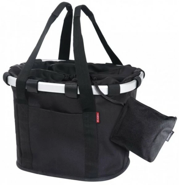 Ergebnis der Kooperation zweier starker Marken. Der schicke Textilkorb von Reisenthel mit dem markanten leichten Aluminiumrahmen – ausgerüstet mit Kupplung für den KLICKfix Lenkeradapter von RIXEN & KAUL. Zum Shoppen oder Ausflug findet hier jeder ein passendes Dekor zum Rad. Mit dem Kordelzug wird der Korb ruckzuck geschlossen. Handy Schlüssel & Co finden Ihren Platz in den praktischen Extrafächern und wenn der Korb mal länger verstaut wird, lässt er sich flach zusammenlegen.