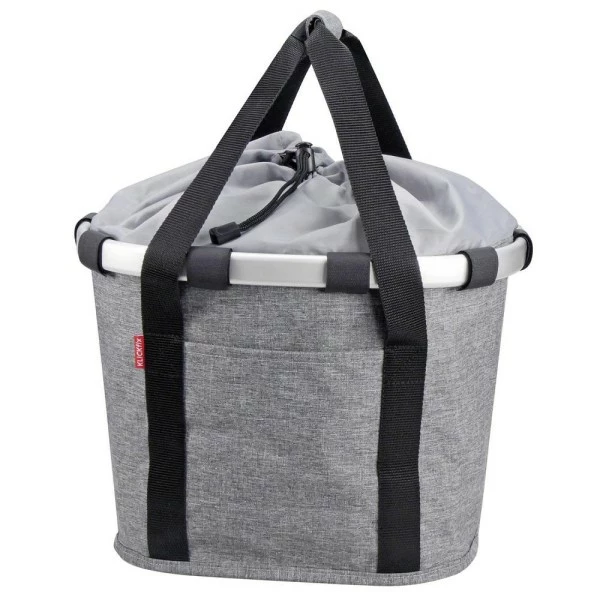 Ergebnis der Kooperation zweier starker Marken. Der schicke Textilkorb von Reisenthel mit dem markanten leichten Aluminiumrahmen – ausgerüstet mit Kupplung für den KLICKfix Lenkeradapter von RIXEN & KAUL. Zum Shoppen oder Ausflug findet hier jeder ein passendes Dekor zum Rad. Mit dem Kordelzug wird der Korb ruckzuck geschlossen. Handy Schlüssel & Co finden Ihren Platz in den praktischen Extrafächern und wenn der Korb mal länger verstaut wird, lässt er sich flach zusammenlegen.