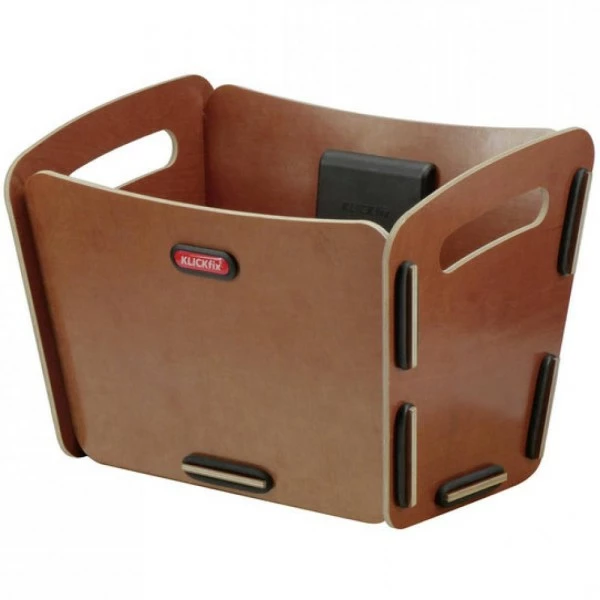 Absolut wetterfester Holzkorb mit stufenlos höhenverstellbarer Adapterplatte, passend für das KLICKfix Lenkeradaptersystem. Als Material dient wasserfestes Birkenholz aus nachhaltiger Forstwirtschaft, widerstandsfähig beschichtet. Die Körbe werden flach verpackt ausgeliefert und lassen sich blitzschnell ohne Werkzeug zusammenstecken. Alle Komponenten sind zu 100% in Deutschland hergestellt.