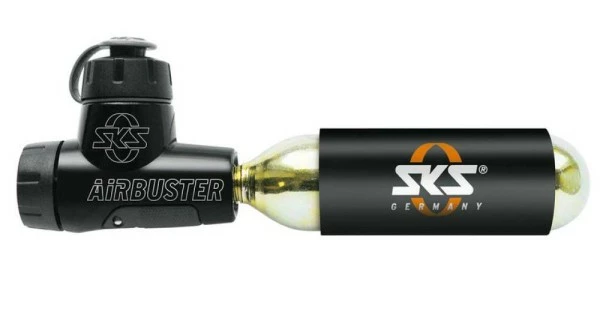 Der neue AIRBUSTER ist die extrem leichte Lösung für jeden Wettkampf. Die CO2-Pumpe besteht aus einem Aluminium-Gehäuse mit integriertem Druckdosierventil, Kälteschutz und Staubschutzkappe. Sie eignet sich sowohl für 16g als auch für 24 g Kartuschen mit Gewinde. Über einen Drehdosierer kann der Druck leicht reguliert werden. Zum Lieferumfang gehören eine 16g-Ersatzkartusche und der bewährte SKS-2-Punkt-Pumpenhalter.